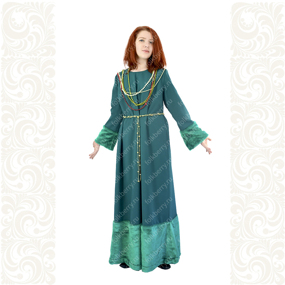 Карнавальный костюм "Новогодняя Елочка" (платье и кокошник) предназначен для выступлений на сцене, праздничных новогодних карнавалов и мероприятий. Платье выполнено из габардина глубокого зеленого цвета. Жилет, манжеты на рукавах, и подол украшены искусственным мехом. В комплект входят несколько ниток разноцветных бус и кокошник красного цвета, что завершает образ Новогодней елочки.