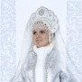 В состав костюма входит высокий кокошник ( четыре варианта на выбор). К кокошнику можно дозаказать фату из белой прозрачной органзы средней длины или длиннную (+300 или 600 руб).