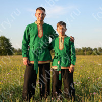 Косоворотка "Егорий" ( рубаха с косым воротом, то есть с разрезом сбоку, а не посередине ) выполнена из льняной ткани. Рукав спущен, под мышкой вставка - ластовица. По вороту, рукавам, низу декор из жаккардовой тесьмы. В комплект входит пояс ( кушак) из ткани.
