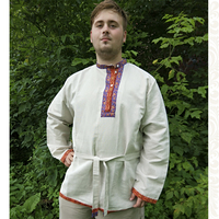 Косоворотка "Лев Толстой" выполнена в традиционном русском стиле из натурального льна, без декоративной жаккардовой тесьмы.