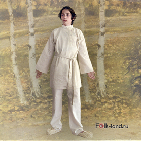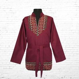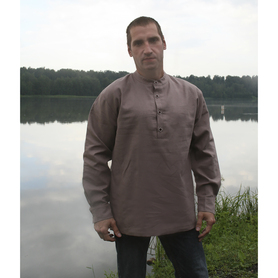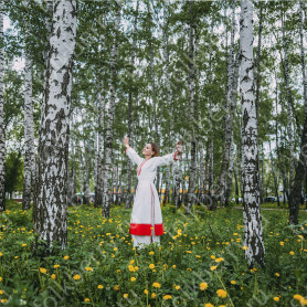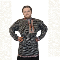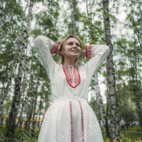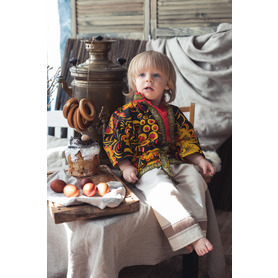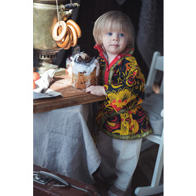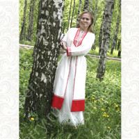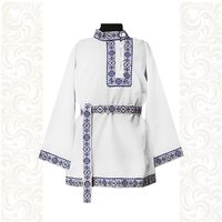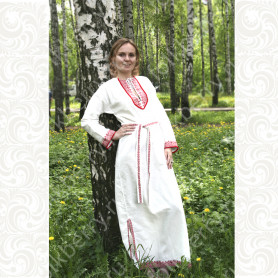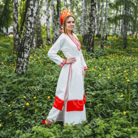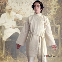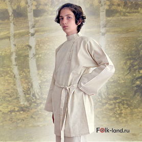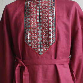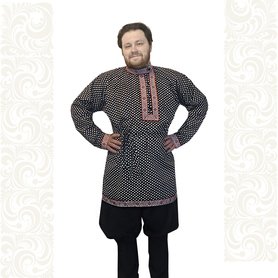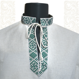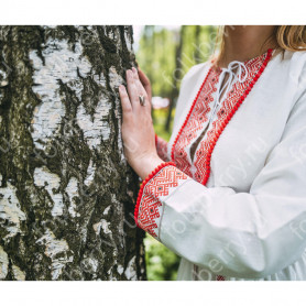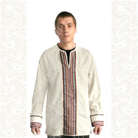 Косоворотка "Православная" выполнена из белого льна с соблюдением славянских традиций. Косоворотку украшает геометрический русский орнамент красно-белого цвета. Используется жаккардовая тесьма. Планка на груди, полики, пояс (кушак) выполнены в красном цвете. Косоворотка смотрится торжественно, из-за чего ее часто покупают для православных и праздничных мероприятий.