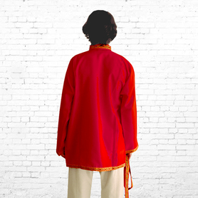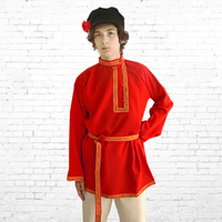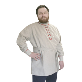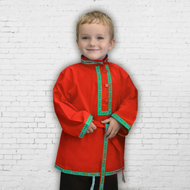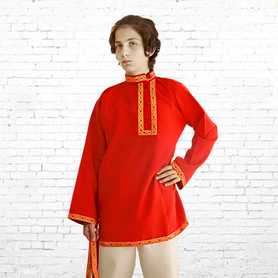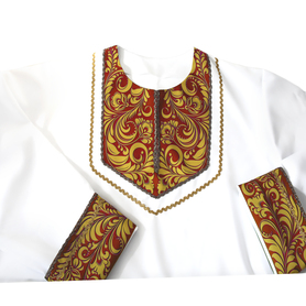 Русская народная рубаха (косоворотка) с кушаком. Изготовлена из хлопка, декорирована жаккардовой тесьмой. Яркий узнаваемый во всем мире рисунок "хохлома" и насыщенные цвета делают Косоворотку праздничной.