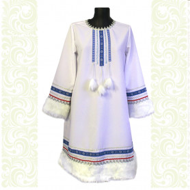 - украшенная искусственным мехом по манжетам и по горловине накидка, выполнена из платочной ткани;