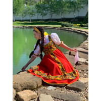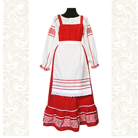 Платье Аленький цветочек удлиненное ( миди, до щиколотки) станет отличным вариантом сценического костюма! Сочетание белого и красного цвет, длинная юбка  придают платью торжественности. Свободный силуэт, рукав реглан, регулируемая горловина добавляют вещи комфортности.