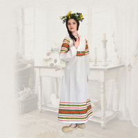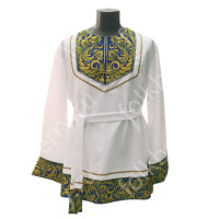 Платье «Дмитра» отрезное по талии, рукав реглан, юбка - почти солнце, длиной немного ниже колена. С поясом. Важно отметить, что декор платья выдержан в славянском стиле, но в целом, платье «Дмитра» - современное прочтение народных традиций. Как правило, дети и подростки с удовольствием выбирают его. Романтичное, удобное и нарядное, оно дарит ощущение радости и праздника. Замечательно подходит для тематических праздников в детских  учебных заведениях, по фасону и яркости цветов отлично подойдет для танцевальных коллективов. Платье выполнено из немнущейся, матовой ткани "габардин" символичных для славян цветов ( красного, синего, зеленого, бордового).