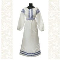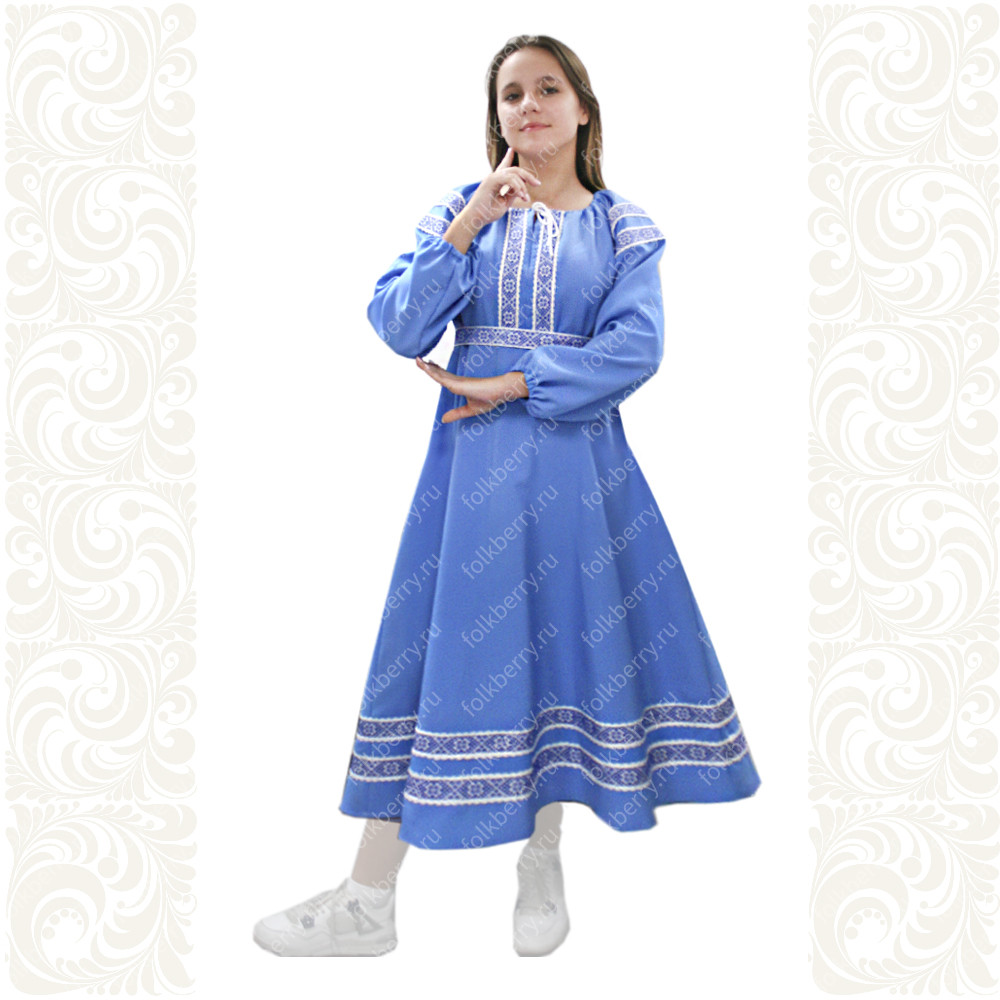 Платье Дмитра голубое - символ неба, реки, цветов России– отличный вариант наряда для в современном руссом стиле.