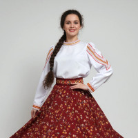 Платье «Дмитра» - современное прочтение славянских традиций. Платье четкого силуэта, чуть ниже колена, чистого яркого цвета. Платье отрезное по талии, длинный рукав-реглан, регулируемая горловина, юбка "почти солнце", с поясом. Для платья подобран эффектный декор - солярные славянские знаки. Платье сшито из габардина, ткани, которая не блестит и не мнется, всегда выглядит аккуратно, ярко, празднично, романтично.