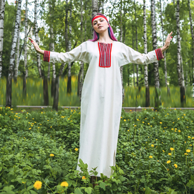 Платье «Белая птица» выполнено в традиционном стиле. Этот женственный наряд подойдет для особых случаев, например, для венчания или участия в торжественных мероприятиях.
