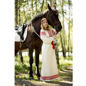 Платье Полюшко из белого льна - отличный выбор для сольных и групповых выступлений, семейных и православных праздников. Платье будет хорошим подарком и обрадует и дочку, и маму, и бабушку одновременно.  В нашем магазине к платью Полюшко можно выбрать кокошник или очелье.