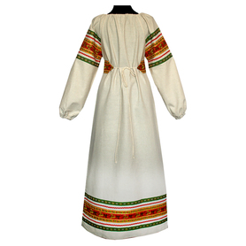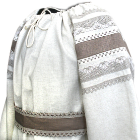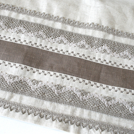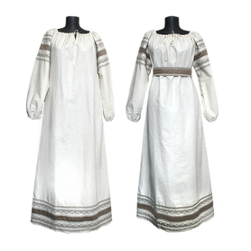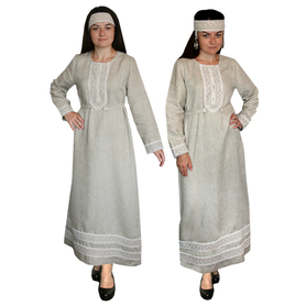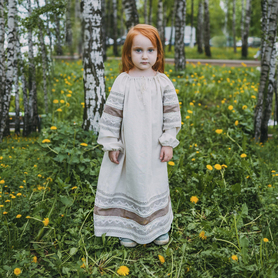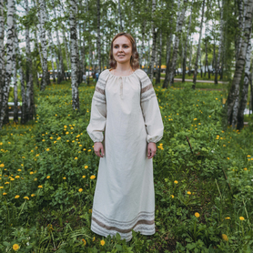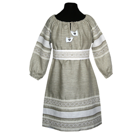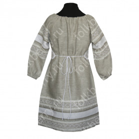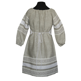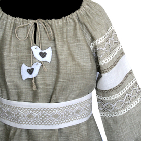 Выполненное из натурального мягкого льна серебристого цвета платье «Скандинавия» декорировано натуральными кружевами и вышивкой ручной работы (небольшая бабочка, закреплена на английской булавке).