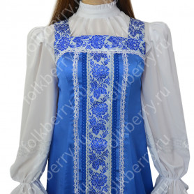 Материал: лен – 70%, хлопок – 30%. Ткань качественная, хорошей плотности, не просвечивает, красивого цвета. Возможны комбинированные модели, со вставкой, отличающейся по цвету, и машинной вышивкой.