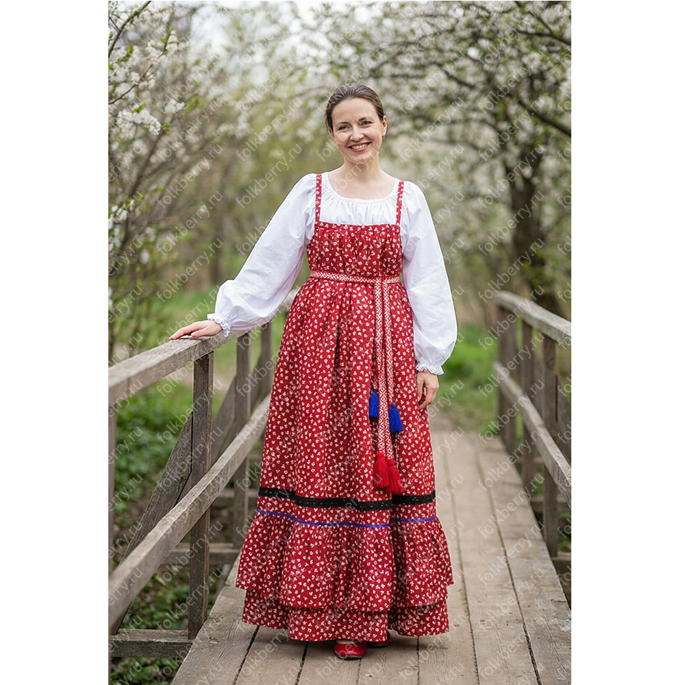 Сарафан с блузой Русь сарафанная. Кострома, хлопок, красный —поэзия русской традиции