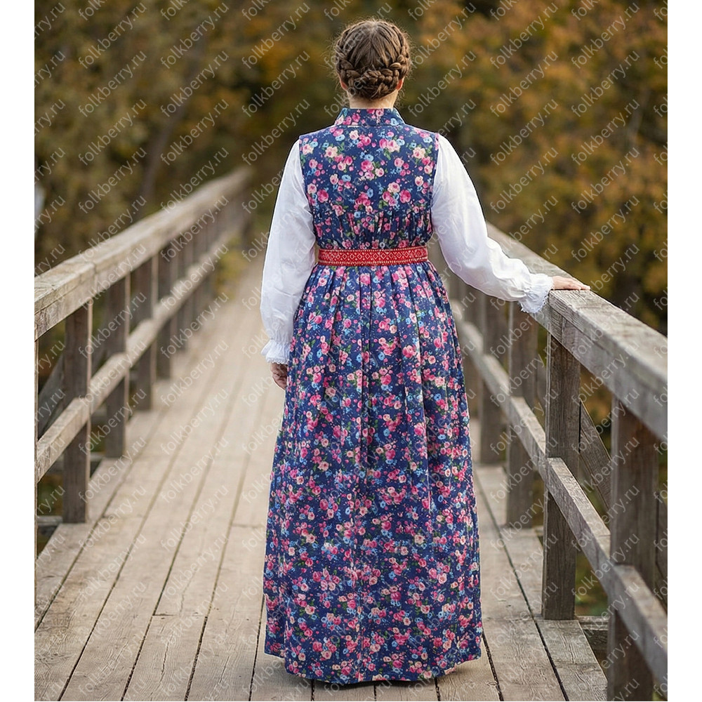 Сарафаны с блузой Русь сарафанная. Самара, хлопок, синий — скромная элегантность русской традиции. Носите Россию с достоинством!
