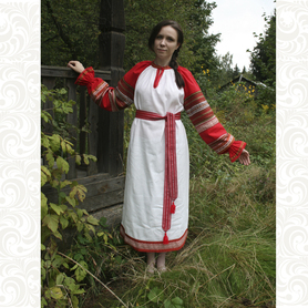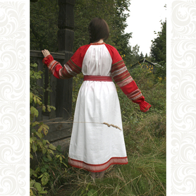 Женский исторический костюм Наследие, лён, кружево