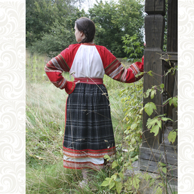 Сарафан с блузой «Дарина» выполнен в красном цвете в традиционном русском стиле. Плотный матовый габардин не мнется, не блестит под софитами.