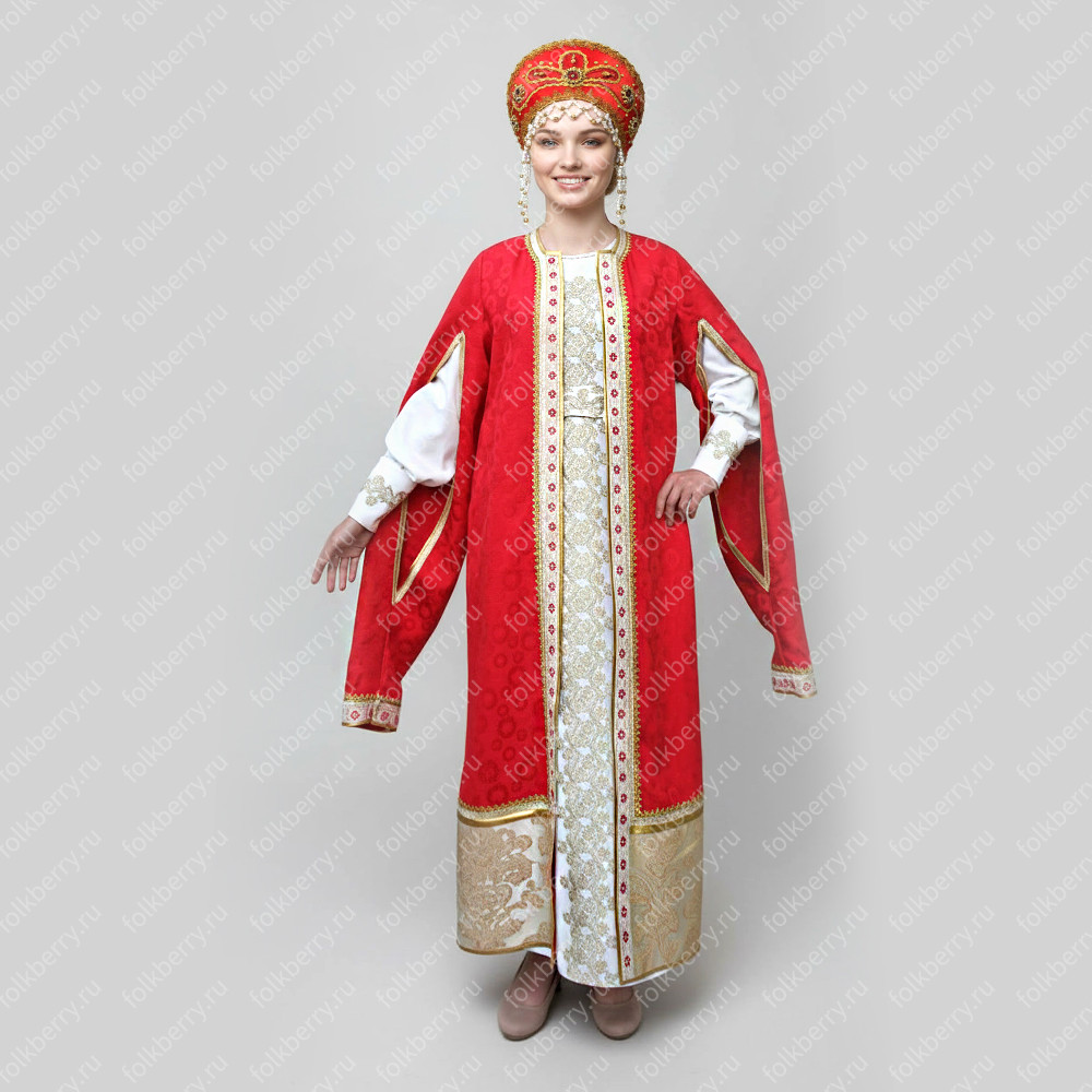 Женский княжеский костюм выполнен в традициях русского княжеского костюма 17-19 веков.